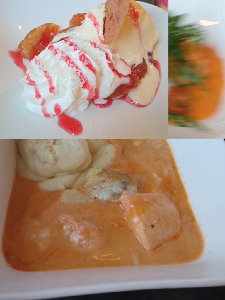 hoofdgerechten Hoofdgerechten Foot & Drinks Stoof en stoemp menuKaaskrokettenWitloof ham met pureeRijstpap€28.00 Smaken van toen menusoep van de dagVol -au-vent met puree of frietjesChocomousse€30.00 Boerentrots menuRundscarpaccioChateaubriand met ChoronsausWarme groenten frietjes os kroketjesDame blanche€35.00 Safari menuSamosaBladerdeeg groenten met zijn garnituurDomodaKip rundsvlees pindakaas Gebakken banaan rijstCafé touba€35.90 Mama Afrika menuAfrikaanse pepersoepChakalakaLinzen-rode bonen-paprikarundsvleesreepjes-rijst of broodThiakryzure room-tropisch fruityoghurt-kokos€39.50 Visgerechten Zeebries menuScampi’s KoudouzVispannetje met pureeTarte tatin met mousse van chocolade€39.00 Croques Alle croques worden geserveerd met fris slaatje Croque madame of€13.50 Croque hawaii.ananas. Croque vol-au-vent Supplement:Mayoniase / ketchup€1.50 Supplement:Frietjes€2.50